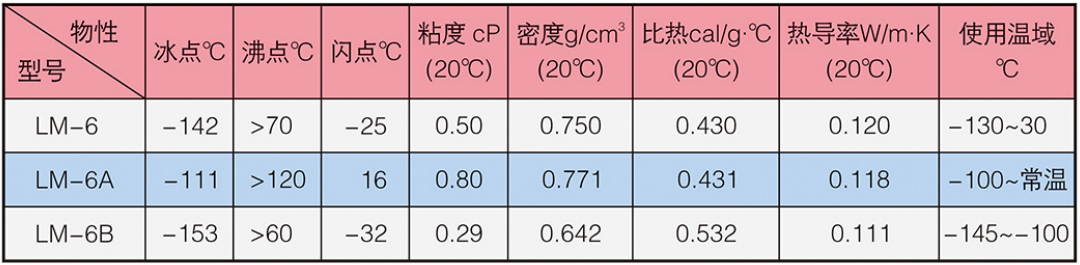 LM-6系列冰河冷媒由改性碳?xì)浠衔飿?gòu)成,外觀(guān)為淺色液體。不溶于水,化學(xué)性質(zhì)穩(wěn)定,粘度小,易燃。