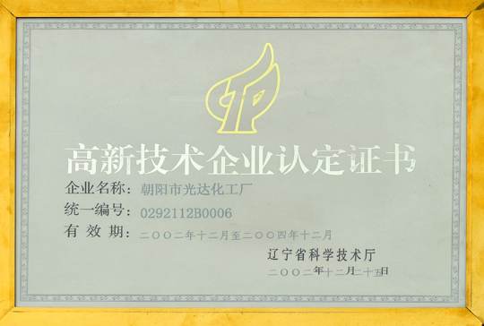 高新技術企業(yè)認定證書2002