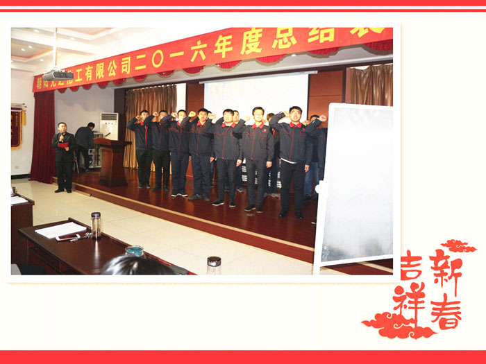 各部門領(lǐng)導對自己2016年度的工作進行了總結(jié)并對2017年工作制定目標;接著,董事長白松泉等領(lǐng)導紛紛上臺宣讀了公司2017年重新修訂的各項制度,并進行了新員工入場宣誓。