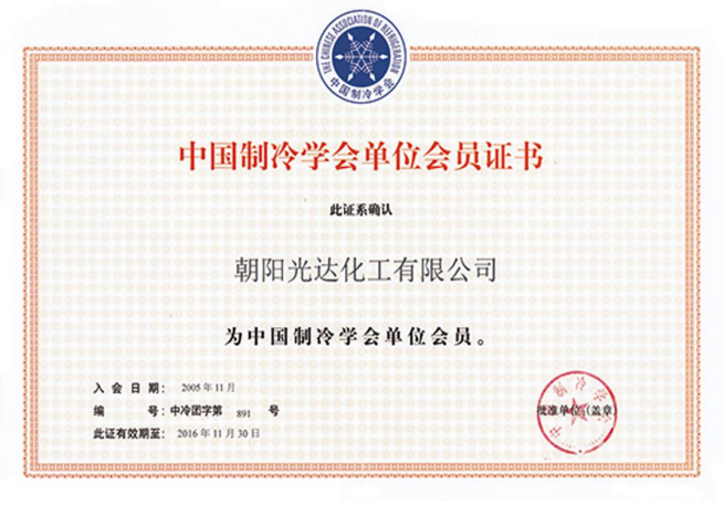 中國制冷學(xué)會(huì)單位會(huì)員證書