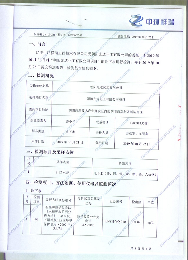 朝陽光達化工有限公司西廠區(qū)土壤檢測報告公示